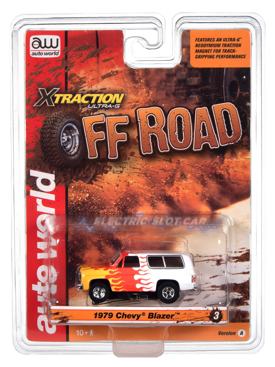 1979 Chevy Blazer (White Flames) H.O. Scale Slot Car, XTraction Chassis | Auto World